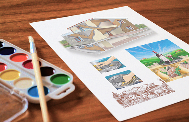 Vettorizzazione di immagini fotografiche o di scritti a mano, creazione di logotipi e immagini astratte, fustelle e esplosi